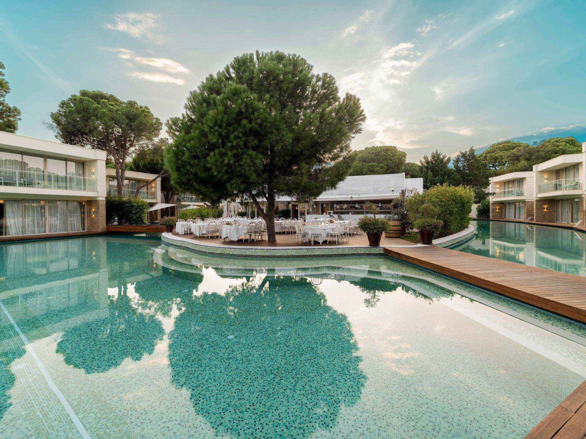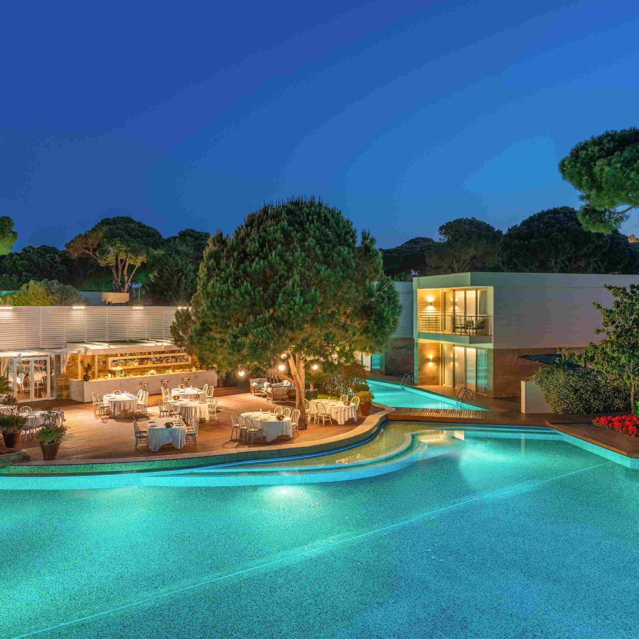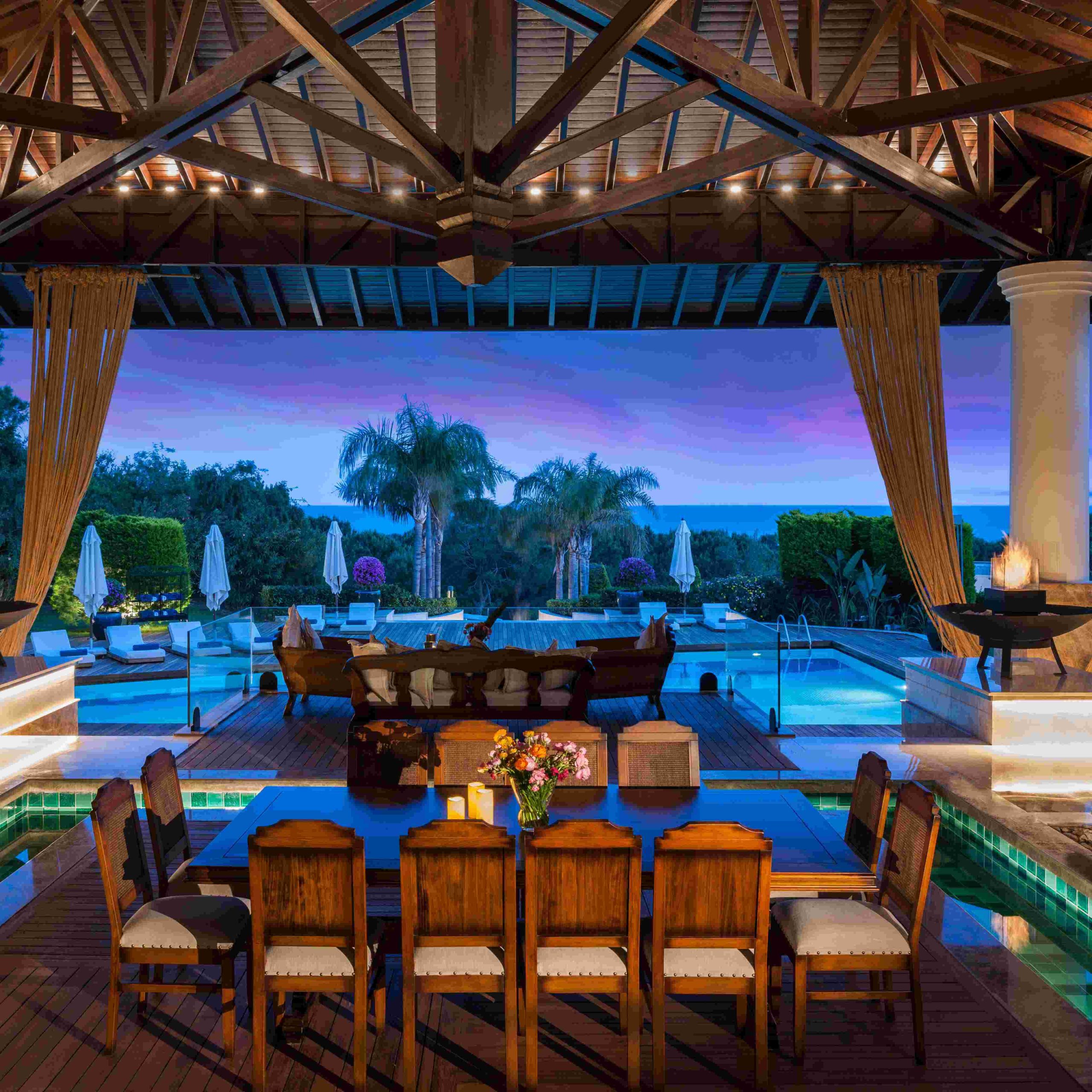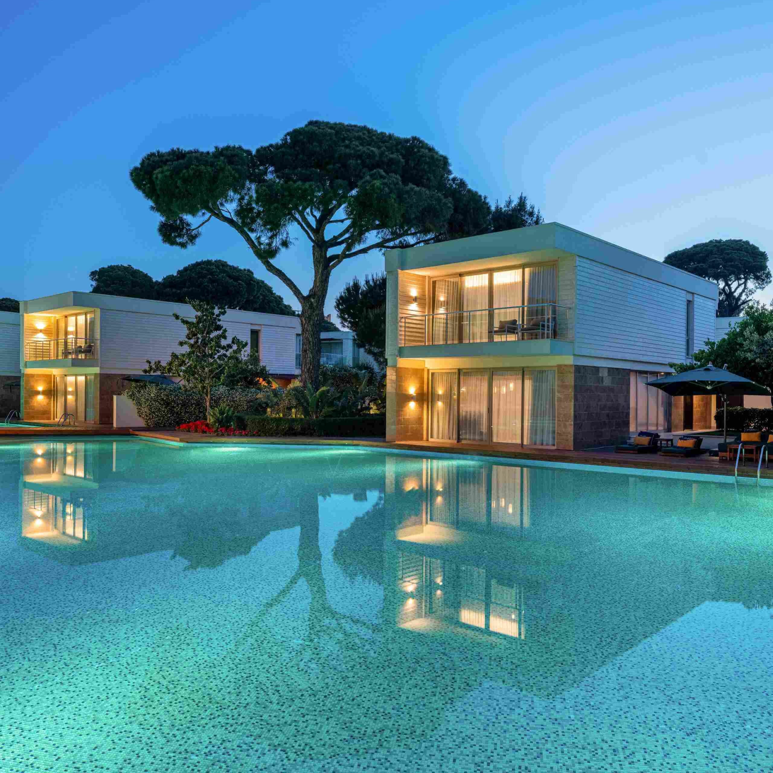 Vilos įsikūrusios atskirose pušynu apaugusiose valdose; kiekviena turi privatų baseiną ir 24 / 7 liokajaus paslaugą. Svečiams priklauso privatūs paplūdimio paviljonai, nemokami oro uosto pervežimai ir galimybė užsisakyti privačią jachtą.