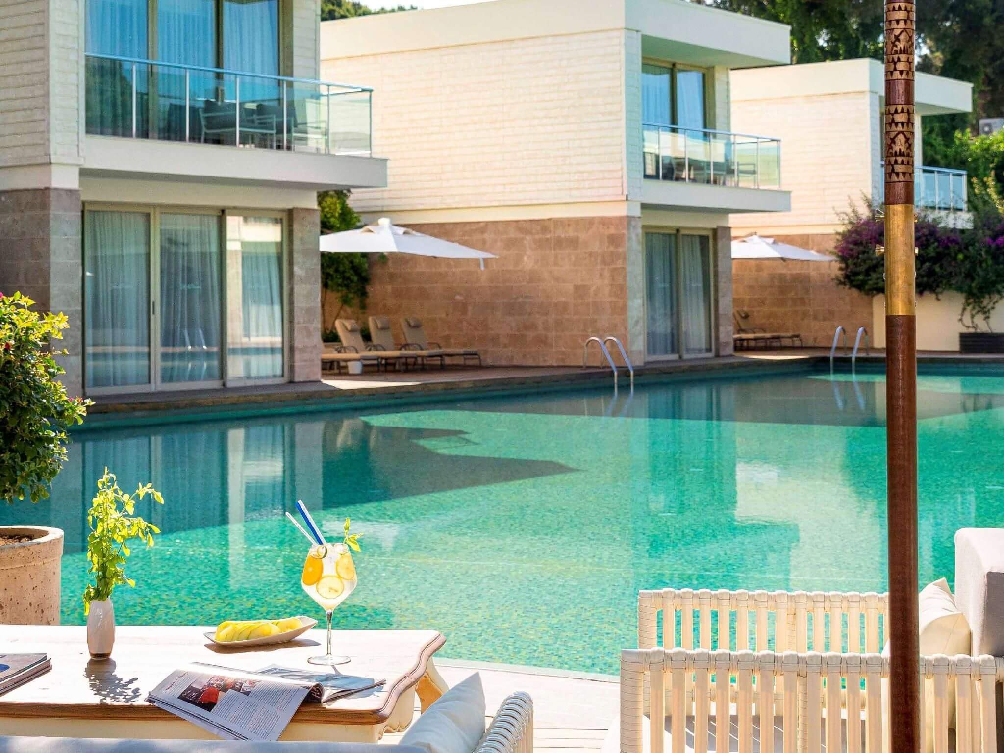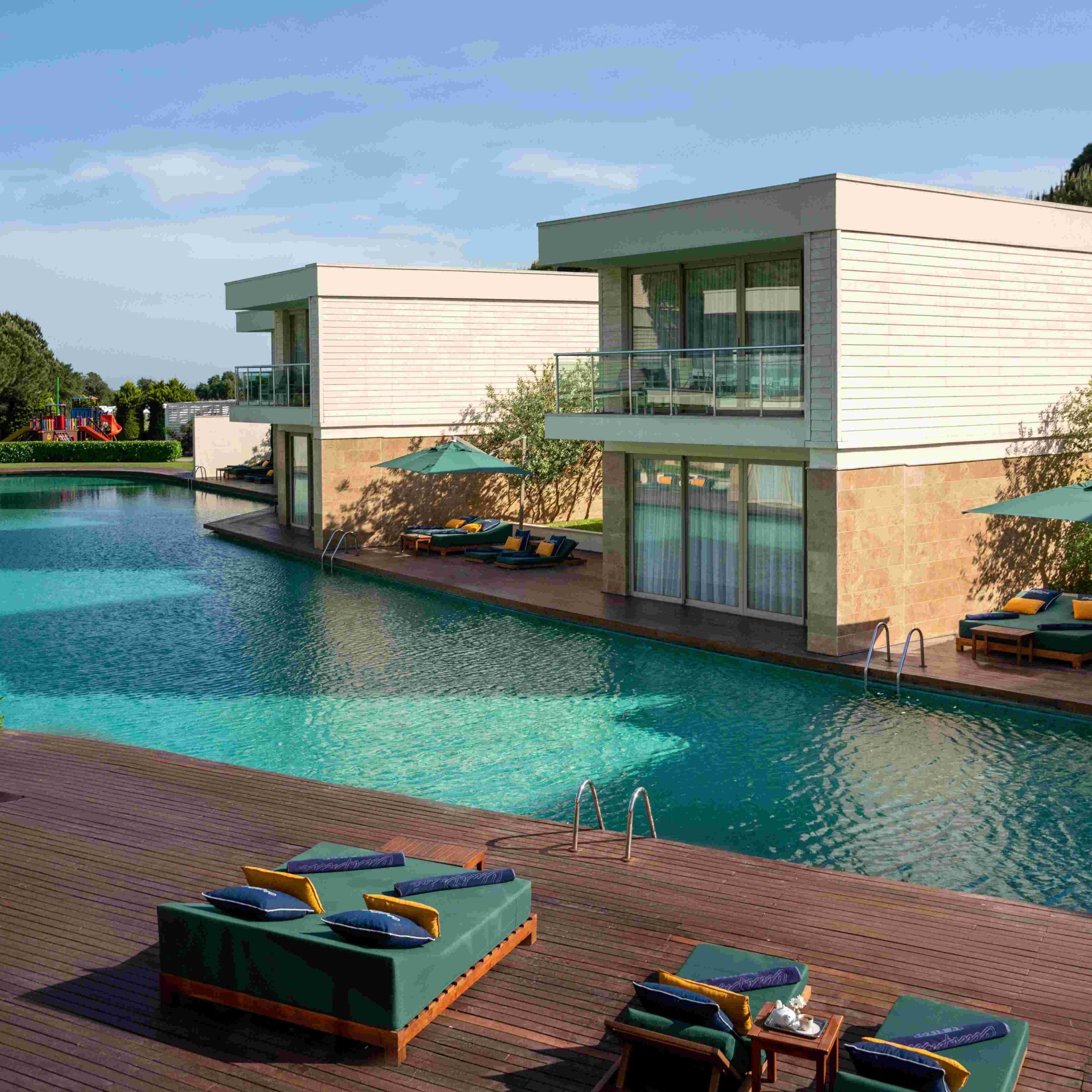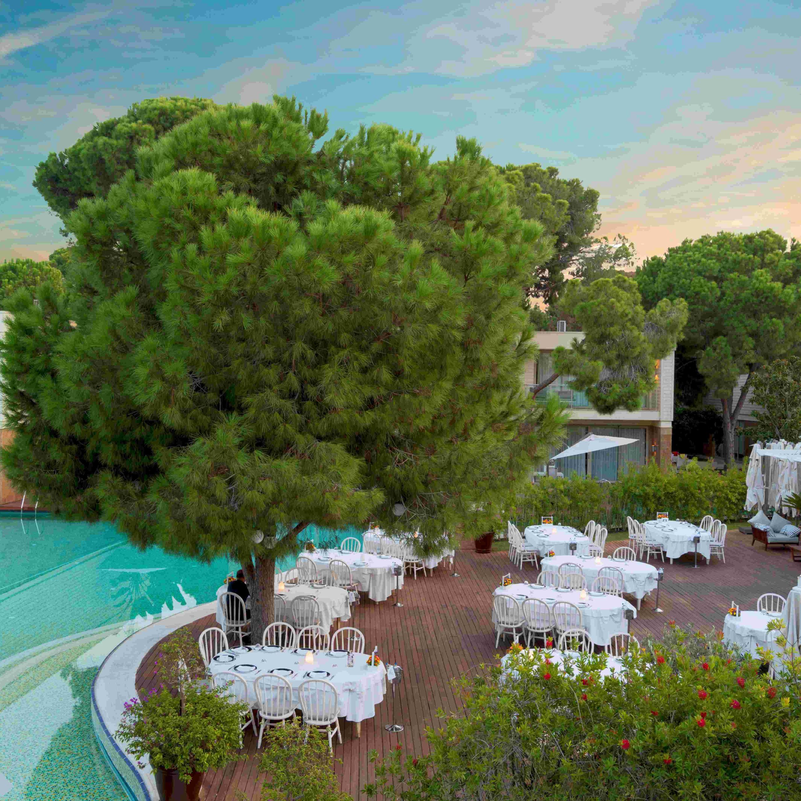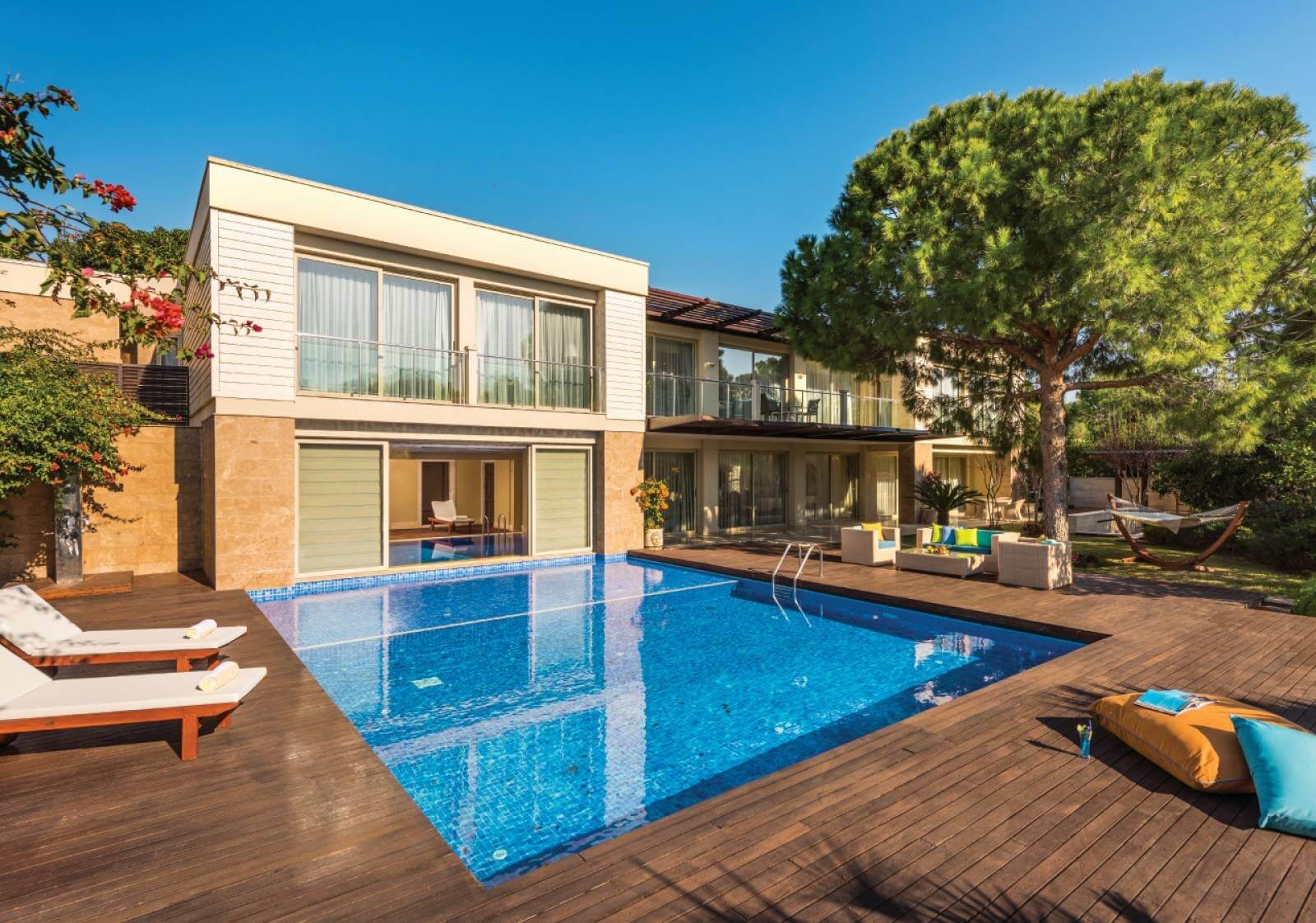 Vilos įsikūrusios atskirose pušynu apaugusiose valdose; kiekviena turi privatų baseiną ir 24 / 7 liokajaus paslaugą. Svečiams priklauso privatūs paplūdimio paviljonai, nemokami oro uosto pervežimai ir galimybė užsisakyti privačią jachtą.